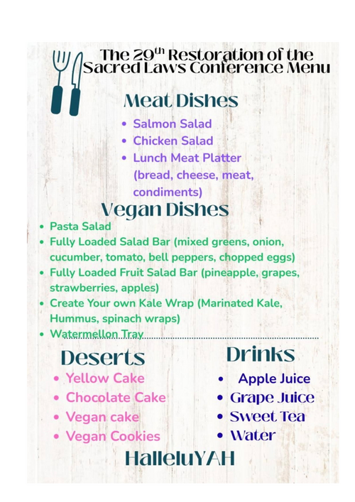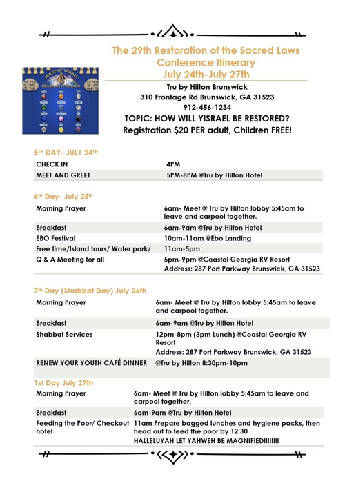 Restoration of the Sacred laws of the most high conference - agenda